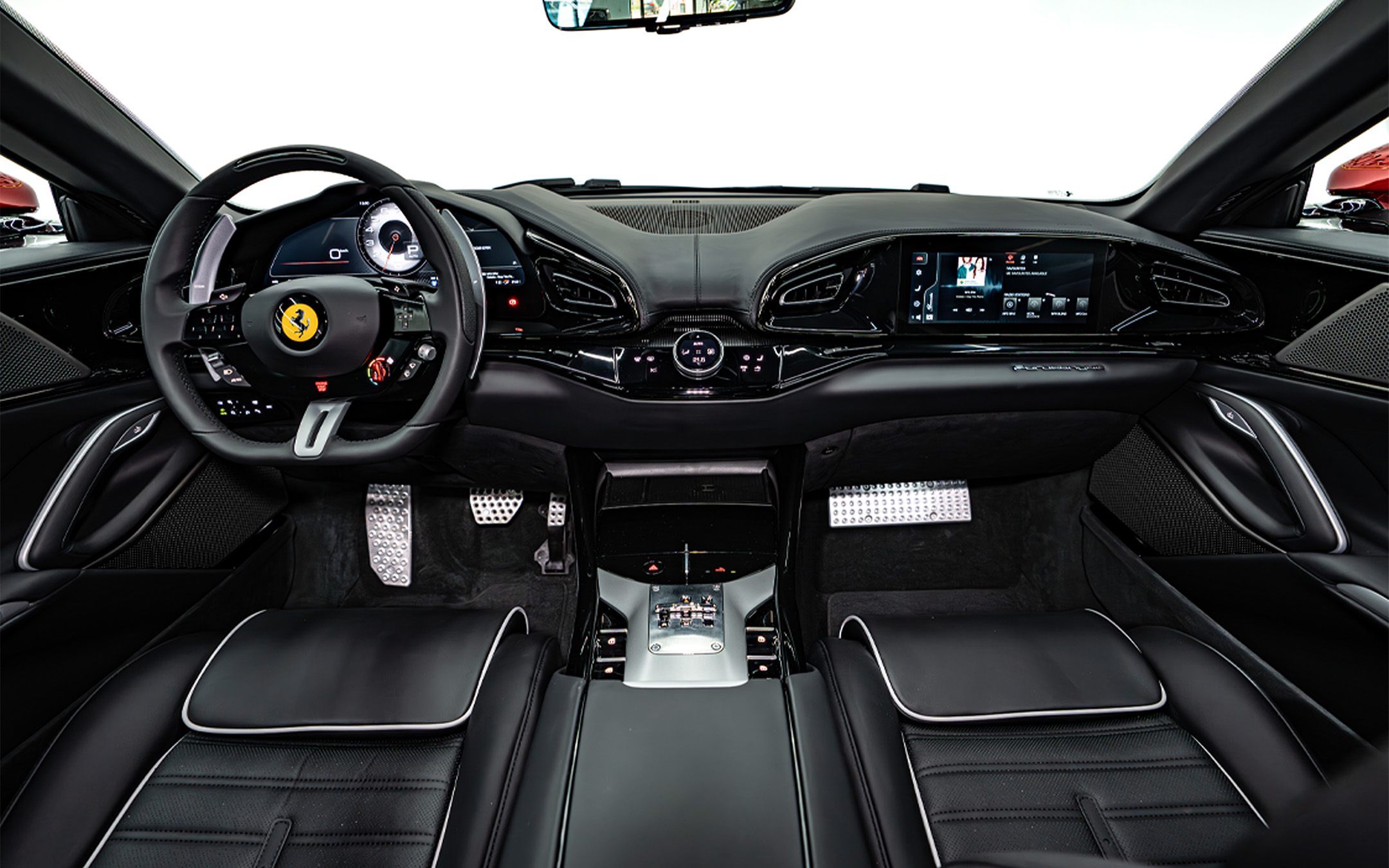 The Purosangue cabin feels like a luxury sports car with four seats. Minimal screens, physical buttons, dual-cockpit layout, and premium materials everywhere. Every switch feels expensive; every curve feels Italian elegance.